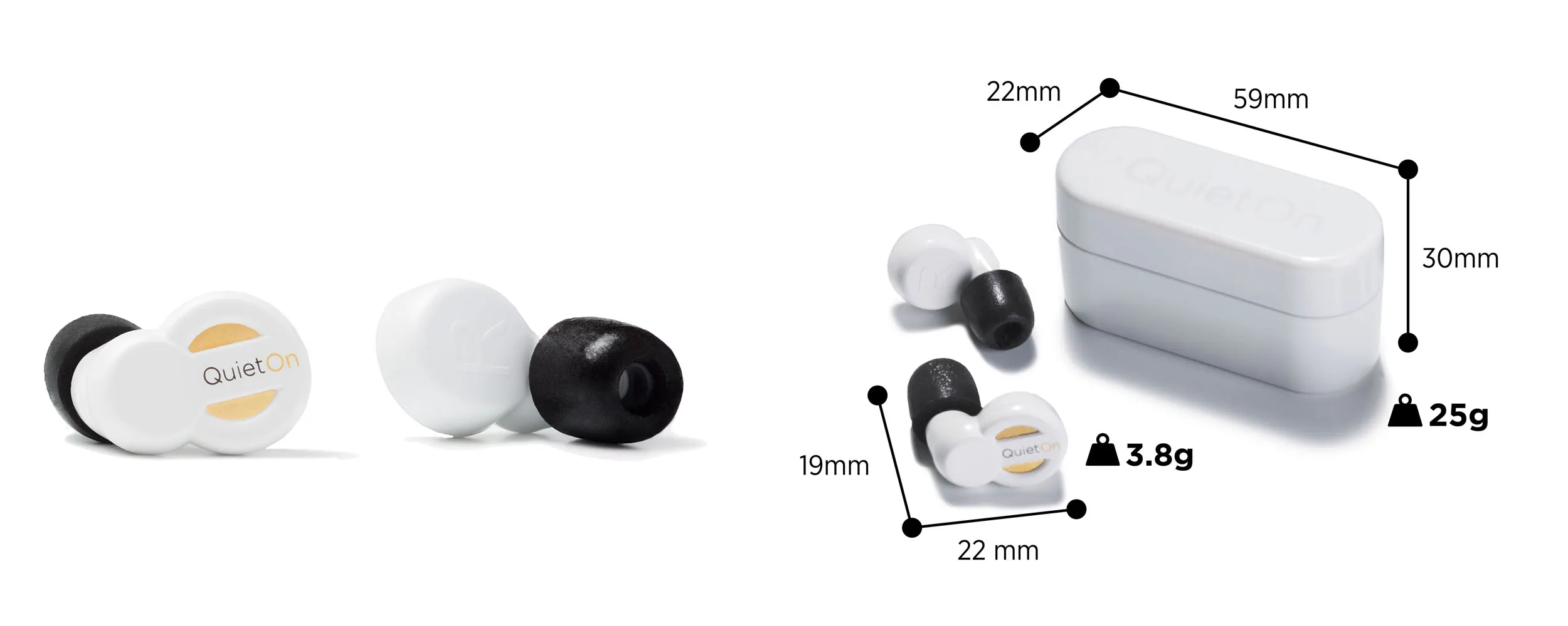 「QuietOn」は、通常の耳栓ではブロックしきれない騒音を、アクティブノイズキャンセル機能を利用して減少させる次世代の耳栓です。