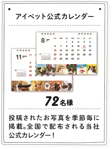 アイペット公式カレンダー 72名(各月ワンちゃん・猫ちゃん3名ずつ×12ヵ月)