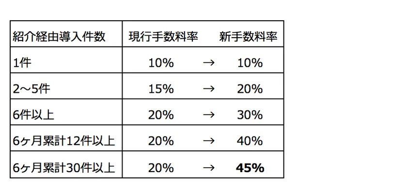新販売パートナー制度では最大で従来の手数料の2倍以上にあたる45%の手数料を提供します。