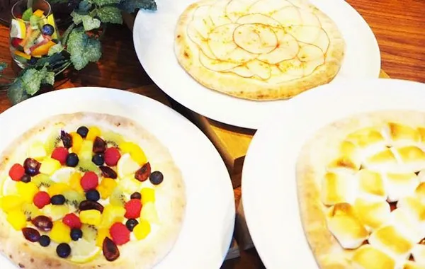 店内の窯で焼き上げるデザートピッツァもご提供!