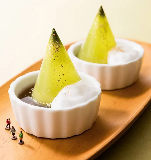 (2)氷山の麓には、大地をイメージした粒あんのゼリーを。