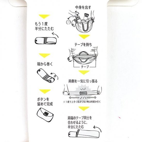 こちらが、コンパクトに折りたたんだ状態です。このままバッグにインしておけば、いつでもエコバッグとして活躍してくれますよ。