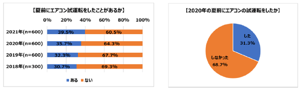 ■エアコン試運転経験者は39.5%。そのうち31.3%が昨年の夏前にエアコン試運転を実施