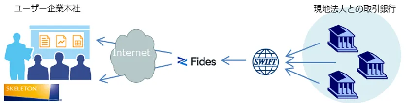海外の銀行取引情報は、コンシストがパートナー契約を締結した世界最大級のサービスビューロー「Fides (本社所在地 スイス)」が提供するサービスと連携し、SWIFT MT940フォーマットで取得します。当サービスは、簡易かつ廉価にSWIFTを利用することができ、大企業だけでなく海外に事業展開する中堅・中小企業グループにおいても、利用価値は高いものとなります。
