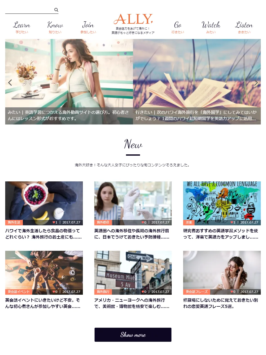 これに伴い、英語圏をはじめとする海外に関心がある20代30代の女性向けウェブサイト「Ally(アリー)」を、2017年8月1日に公開しました。