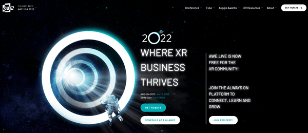 AWEは、毎年北米、ヨーロッパ、アジアで開催される世界最大規模のVR/ARショーケースで、大きくカンファレンス、エキスポ、アワード、ピッチ大会の4部で構成されています。業界のリーダーたちが一堂に会して、主要な技術的課題の解決、VR/ARの新分野への導入、倫理的・法的問題の検討、多様性の促進など以後10年に向けたVR/AR業界の方向性について議論を行う場となっています。