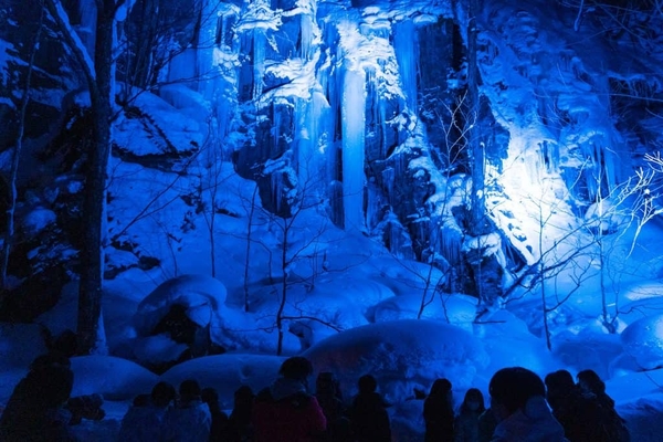 実際にライトアップされた氷瀑の絶景を楽しむ