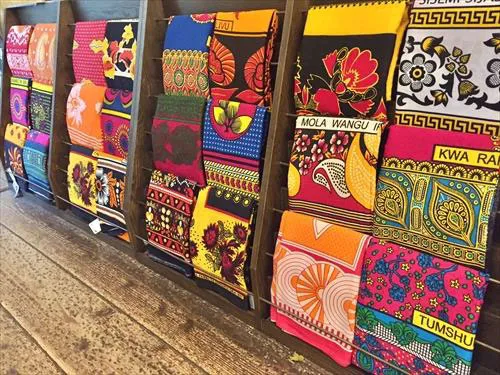 カンガとは、タンザニアをはじめ、東アフリカで広く使われている大判の綿布で、使い勝手の良い大きさ、大胆な柄や色使いが人気です。