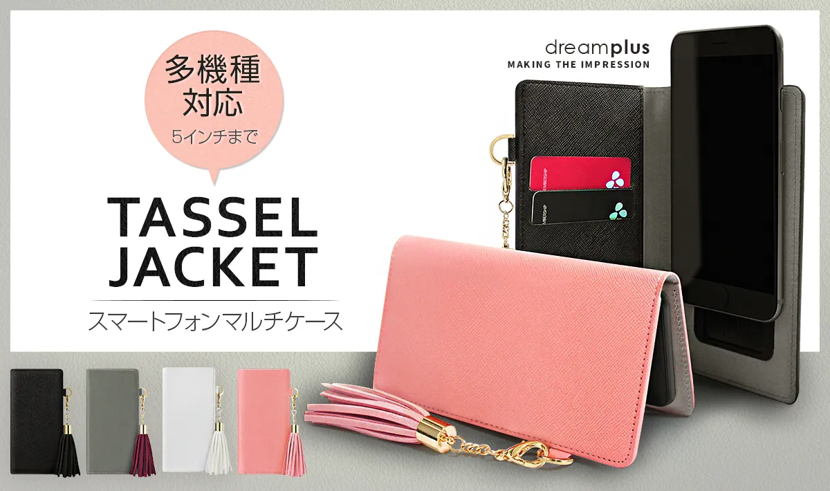 モバイルケース・アクセサリー専門の株式会社ロア・インターナショナル(所在地:東京都新宿区、代表取締役社長:Ally Won)はdreamplus(ドリームプラス)から、5インチまでの幅広い機種のスマホに対応する「多機種対応スマートフォンマルチケース Tassel Jacket(タッセルジャケット)」を発売しました。