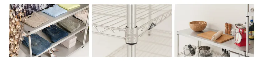 棚はワイヤーとソリッドの2種。どちらも業務用途に耐えうる耐荷重量を備えています。