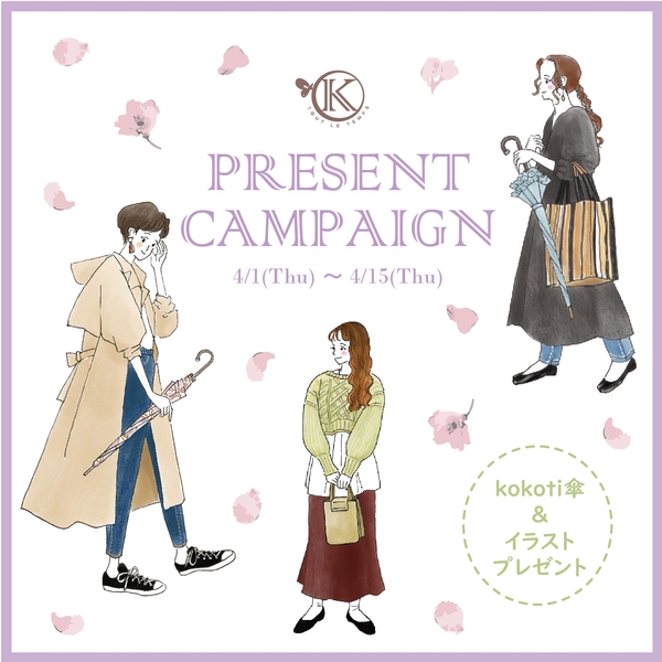 365日いつでも心地よく使える傘ブランド「KOKoTi(ココチ)」。ブランドデビュー1周年を記念してInstagramキャンペーン「あなたのコーデがイラストに!傘&イラストプレゼント」を開催します。