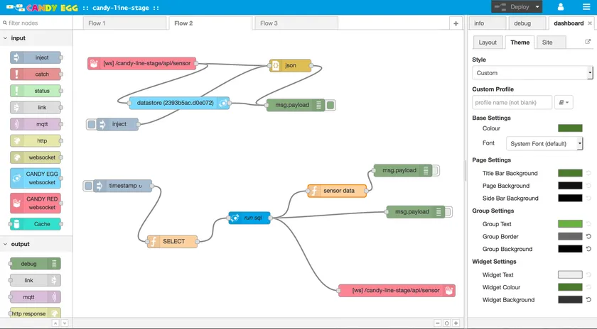「CANDY EGG」は、オープンソースのビジュアルツール「Node-RED」(ノードレッド)をベースとしたフローエディターと、オープンソースのデータベース「MySQL」(マイエスキューエル)、それにデータベースのバックアップの機能をセットにしたサービスです。利用者は事前の設定や準備をする必要なく、最初にログインした時からすぐに、フローエディター、データベース、それにバックアップ機能を利用できます。