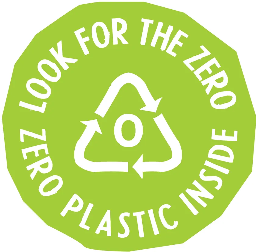 プラスチック・スープ財団より、原料にプラスチックを使用していない商品へ与えられる「ゼロ・プラスチック・インサイド」のロゴ