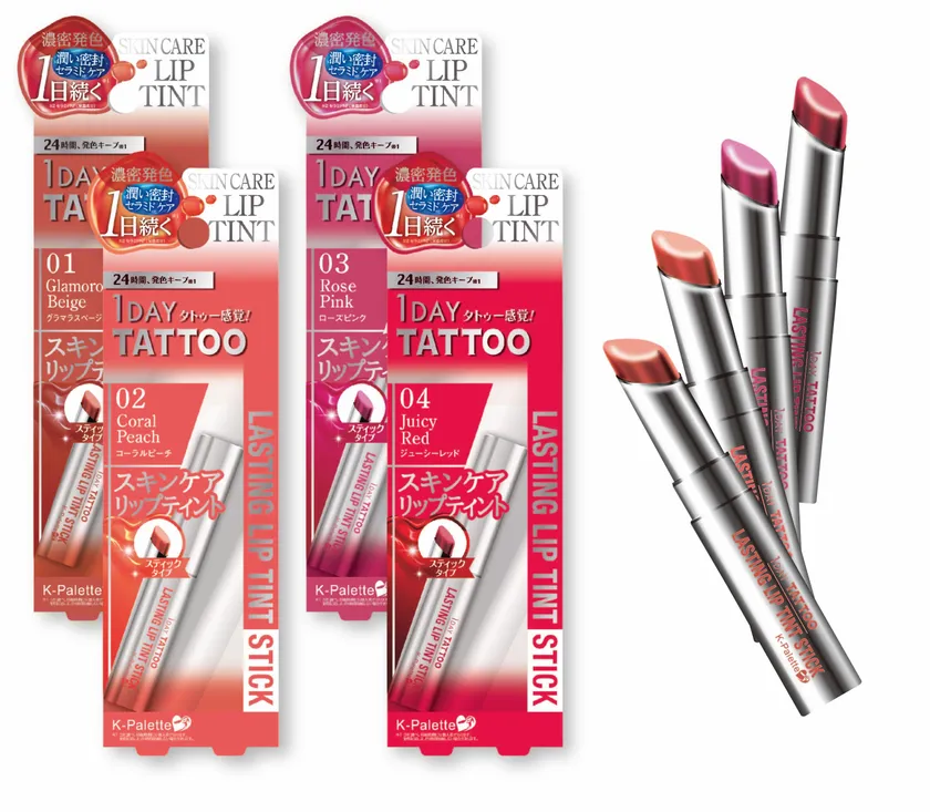 累計43万本(※1)突破の「1DAY TATTOO」リップティントシリーズより、超濃密「発色」と濃厚「潤いケア」の「ラスティングリップティントスティック」が新登場です。高保湿持続処方なので、カサカサ唇もつるんと包み込み、潤い密閉ケア。塗った瞬間から、濃密「見たまま発色」するリップスティックに、ひとめぼれすること間違いなしです。