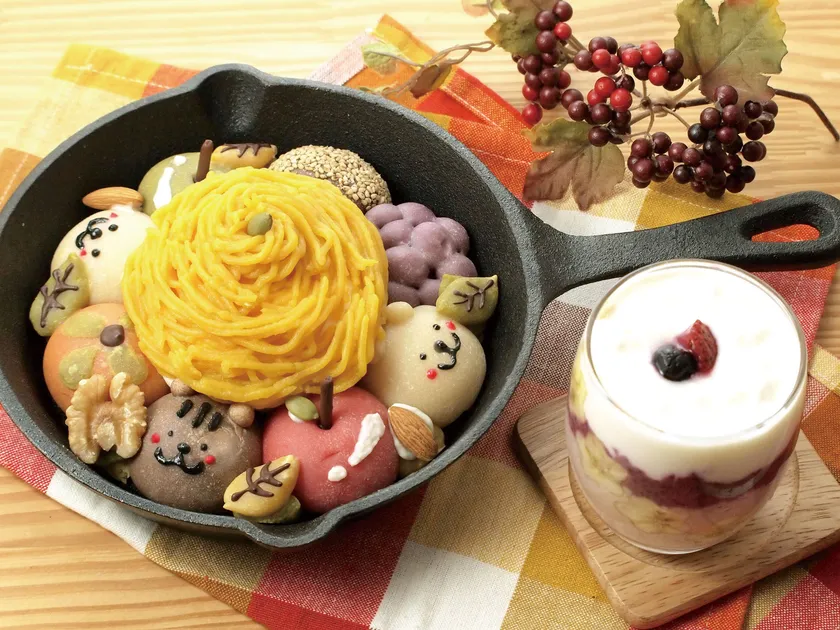 スキレットブレッドは発酵時間を短く。その分、細工に時間がかけられます。カラフルに焼き上がったパンには、安納芋モンブランをのせてスイーツ風に仕上げます。一度レシピを覚えておくと、自由に色や形をアレンジできるので、どんどんオリジナルに挑戦することが可能です。