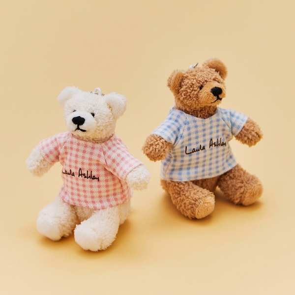 英国の田園地帯で古くから飼育されているシープ、英国原産の犬種テリアがモチーフのドッグ、英国で愛されるテディベアからインスパイアされたベアの3種類を、やわらかくふわふわした触り心地の素材で制作したチャーミングなキーホルダーで、ローラ アシュレイのサインロゴが入ったウエアを着たスペシャルなアイテムです。