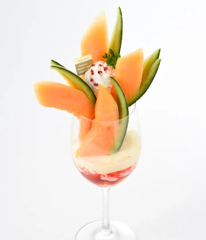 札幌市に店舗を構える「フロマージュの杜」は、北海道産のしぼりたて生乳を使用したミルク本来のコクが感じられるソフトクリームが毎年好評を得ています。今回は京王百貨店限定商品として、北海道産のみずみずしいメロンのおよそ4分の1の量を一口大にカットし盛り付けた上に、ソフトクリームをのせました。ソフトクリームは3種(ミルク・メロン・ミックス)からお選びいただけます。