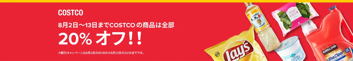 「コストコ商品20%OFFキャンペーン」 8月13日まで実施中