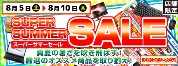 パソコン工房・グッドウィルの各店では、8月5日(土) より「スーパーサマーセール」を開催いたします。厳選のオススメ商品を取り揃え!8月5日(土)・6日(日)限定の特価品もご用意しています。