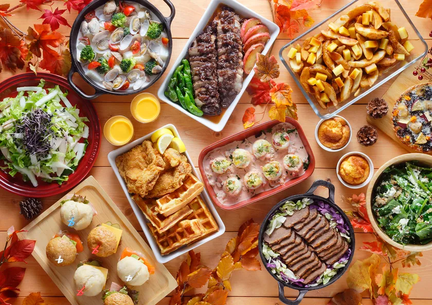 今回のビュッフェでも、「キヌア」や「ココナッツオイル」、「ケール」、「メープルナッツ」などスーパーフードを使った料理をご用意。「キヌアとケールのテラス風白和え」や「シーフードと大根、いぶりがっこの西京味噌サラダ」、「ひじきとさつま芋、栗のホワイトキッシュ」など、スーパーフードと和の食材を融合させたメニューもお楽しみいただけます。