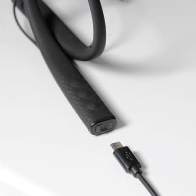 ネックバンド式にすることでボタン操作がしやすく耳からも外れにくい構造に。歩行時にケーブルを伝わって発生するノイズが少なく、不快感を軽減します。