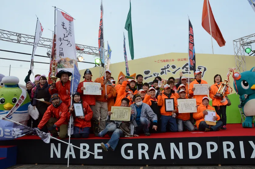 参戦60チームの中から、来場者の投票でグランプリ(金の鍋賞)、準グランプリ(銀の鍋賞)、第3位(銅の鍋賞)など各賞を決定します。2017年は約14万人が来場し、来場者投票の結果、千葉県八千代市の街づくり市民の会「もちぶた炙りチャーシューバージョンとん汁」がグランプリに輝きました。毎年、上位3鍋は「J-ブランド鍋」に認定し、歴代メダリスト等による対決の「グランドチャンピオン大会」(2020年開催予定)の出場権を獲得します。