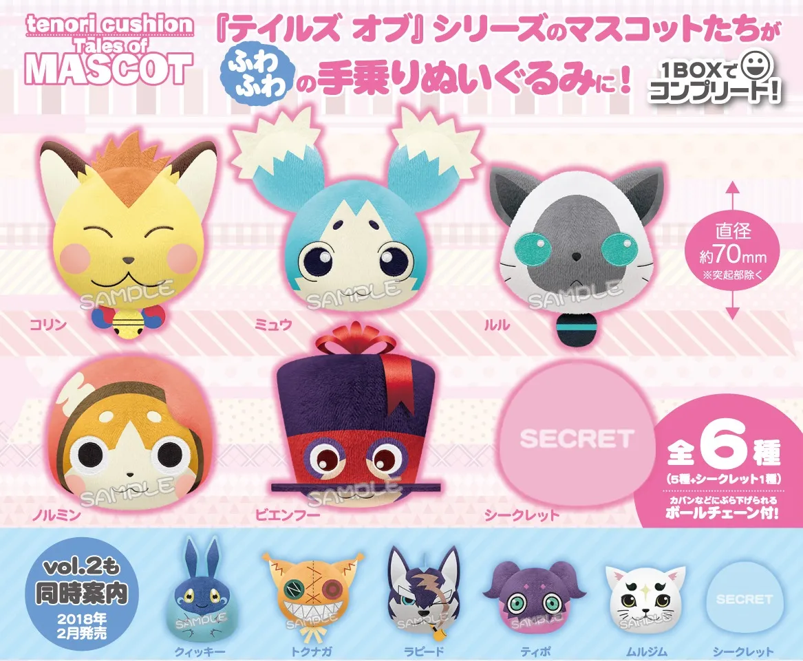 大人気RPGゲーム『テイルズ オブ』シリーズより、各タイトルに花を添えてきたマスコットたちがまんまるふわふわでゆるっと可愛いtenoriクッションに! 2018年1月発売!!
