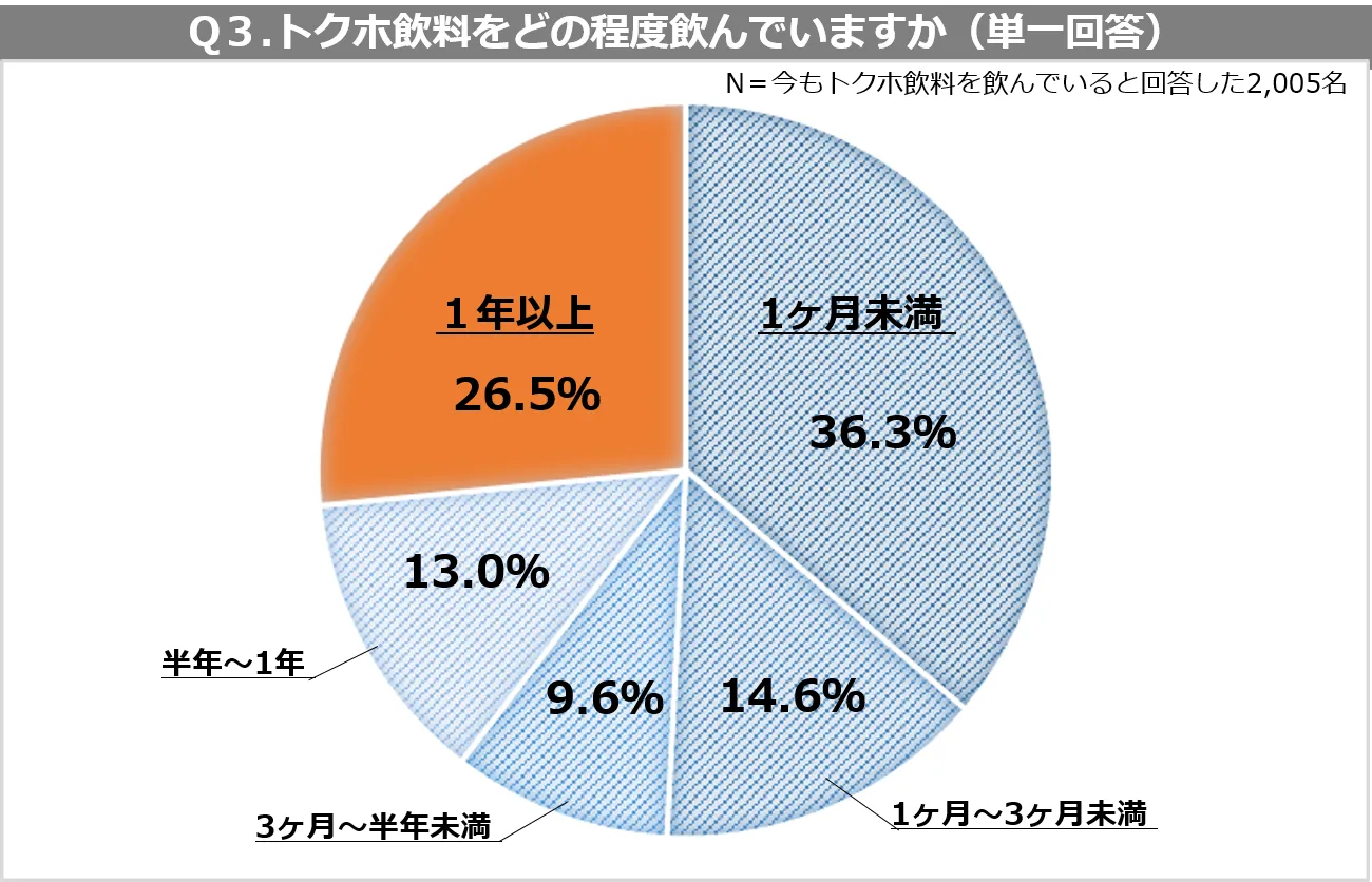 ■1年以上継続してトクホ飲料を飲用しているのは、26.5%。