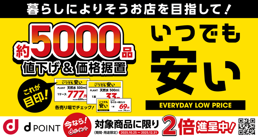 PLANTは『いつでも安い』! 生活必需品約5,000品を値下げ&価格据え置きで暮らしを支えます
