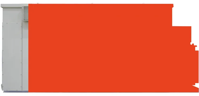 従来のSOLAR SPECと新製品のシルエットを比べると、新製品はかなりコンパクトになり、多くのメリットが発生します。約800mm小さくなった新SOLAR SPEC(1,000kW)は、設置スペースも13%減、コストもコンパクトになります。(下記比較画像参照)