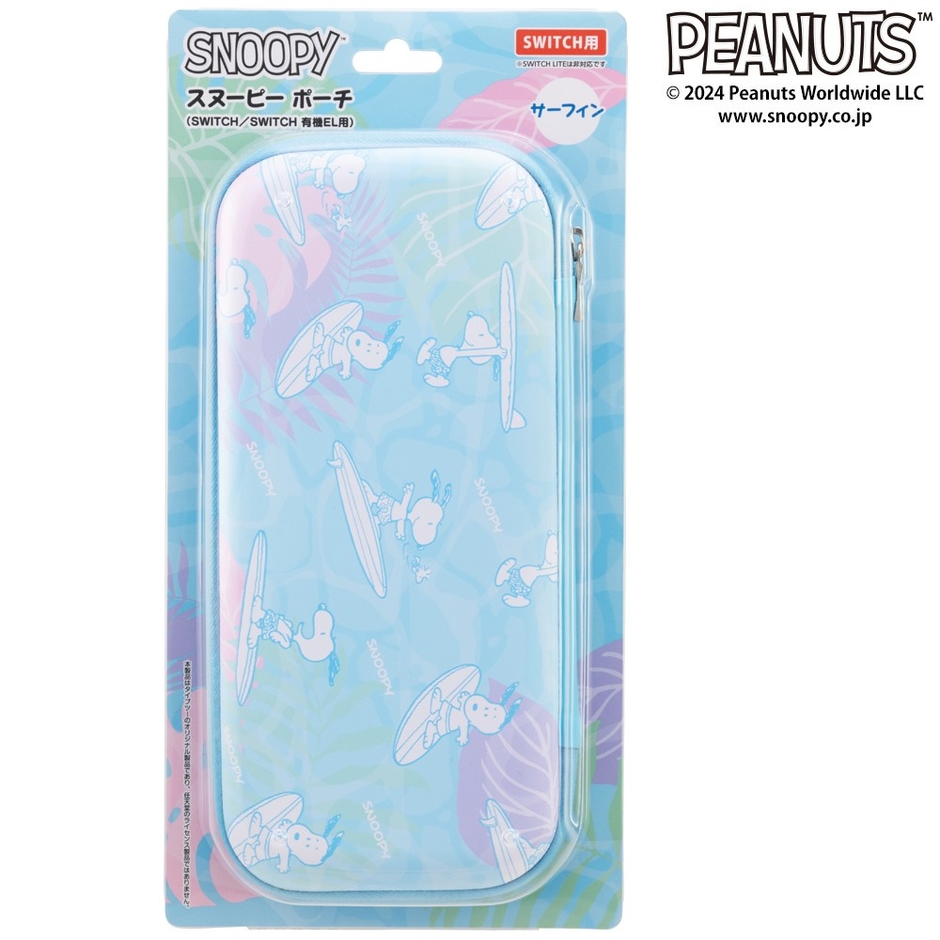 本製品は、Switch/Switch(有機ELモデル)本体をキズや汚れから保護するEVA素材の収納ポーチです。今回、発売済みの「フェイス」と「コミック」に加えて、「ピーナッツ」と「サーフィン」の2種類が新発売です。