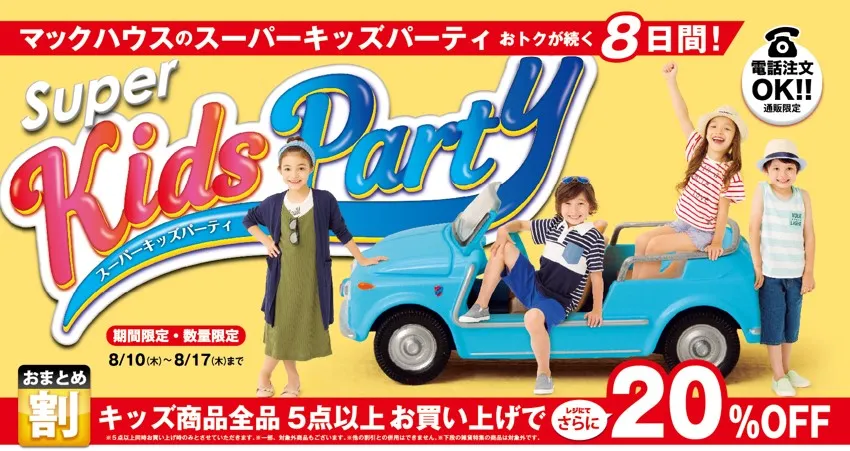 お盆限定 キッズお買い得イベント マックハウスの「Super Kids Party」開催