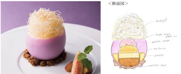 (2)中には、紫芋のアイスとマロンクリームや栗の甘露煮のタルト、