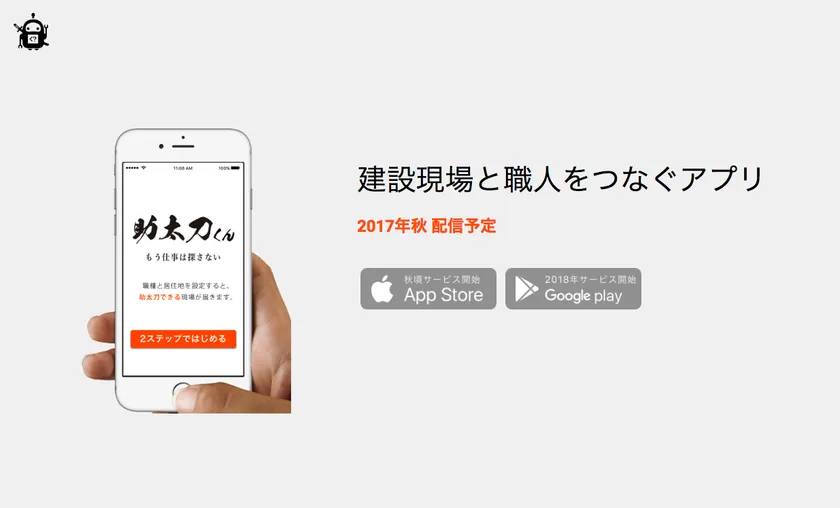 2017年9月に、「助太刀くん」( http://suke-dachi.jp/ )のWeb版を先行リリース予定です。また、リリース前にもかかわらず、当社には中堅ゼネコン数社から「囲い込みが未だに通用しているのは、スーパーゼネコン(国内5社)のみ、他は親方達の高齢化が進み、従来のやり方は崩壊してきている。ぜひ応援したい」などの声が寄せられています。当社は、建設業の現場と職人のマッチングプラットフォームの構築を目指します。「助太刀くん」によって「現場」は魅力ある職場に変わります。