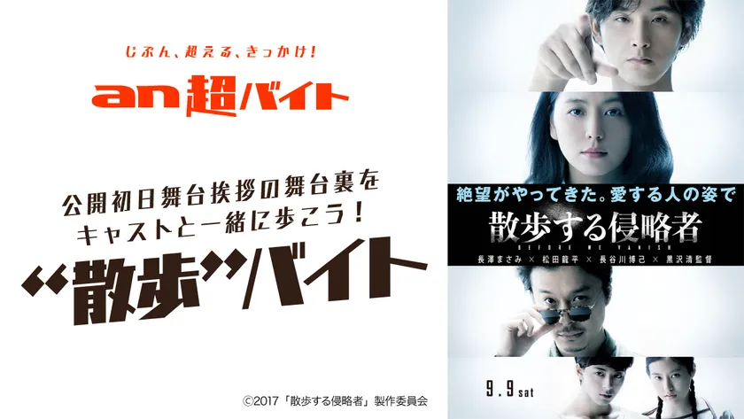 「an超バイト」 × 映画『散歩する侵略者』 “散歩”バイトを大募集! ~公開初日舞台挨拶で、キャストと一緒に“散歩”をしよう~