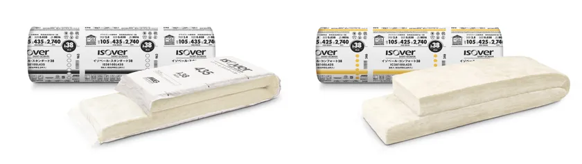 この新たなブランドは、「イゾベール・スタンダード」(防湿層付き)と「イゾベール・コンフォート」(防湿層なし)の2商品で、これからの時代を見据えた、今後の主力商品となる住宅用高性能グラスウール断熱材です。