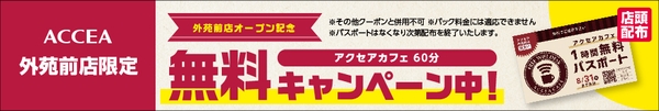 ご来店のお客様にコワーキングスペースACCEA CAFÉ(アクセアカフェ)を60分無料でご利用いただけるパスポートを配布いたします。パスポートは2021年8月31日(火)まで何度でもお使いいただけます。