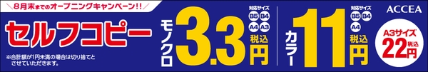 ・セルフカラーコピーA3サイズ 22円/面(通常 33円)