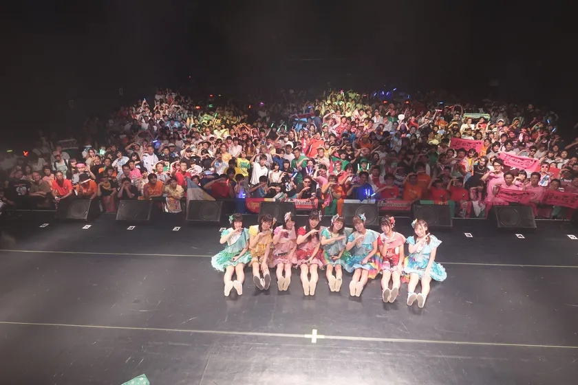 「今日は時間を使ってお金を使って、私たちに会いに来てくれたみんな本当にありがとう。この恩は絶対に忘れません。恩返しのためにもさらに上を目指してがんばります」とメンバーの桜田 花音は語りました。