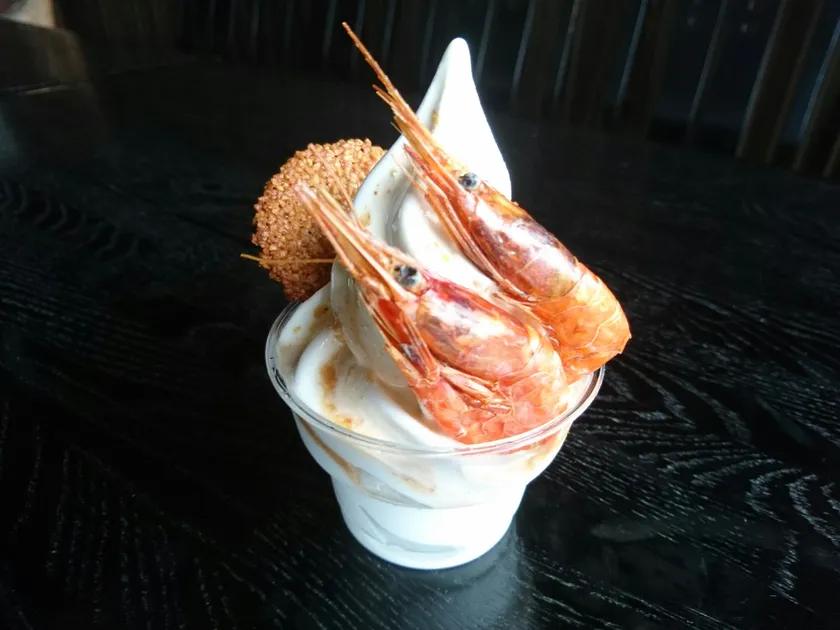 ソフトクリームの上をエビが“泳いでいる”!? 新潟県南魚沼の観光センターで『南蛮海老ソフトクリーム』登場