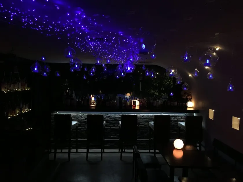その二つの青い光のコラボレーションが、店内をまるで夏の星空のようにお洒落で素敵な空間にしています。