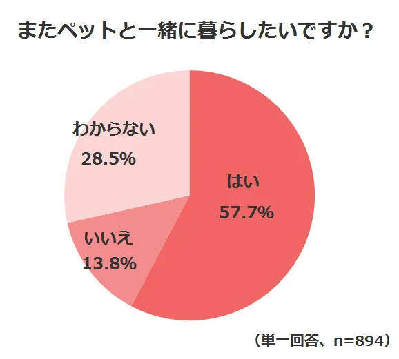 死別などつらい思いをしたくないから、ペットと一緒に暮らしたくない人が13.8%いる一方で、「機会があれば、またペットと一緒に暮らしたい」と考えている人が