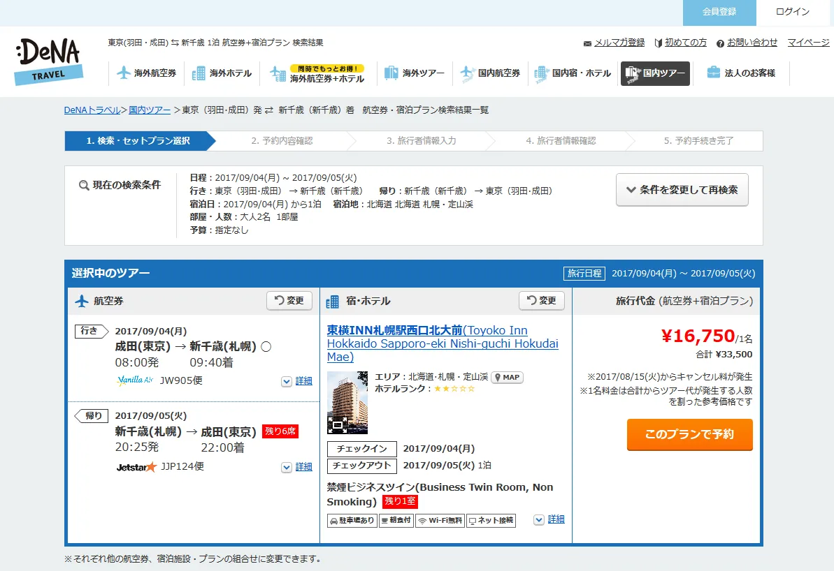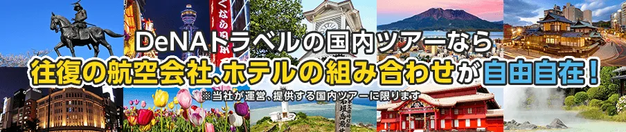 株式会社DeNAトラベル(本社:東京都新宿区、代表取締役社長:中野正治)は、オンライン総合旅行サービス「DeNAトラベル」(URL:http://www.skygate.co.jp/)において、往復の航空券とホテルの組み合わせが自由自在な国内ツアーの販売を2017年8月16日より開始します。
