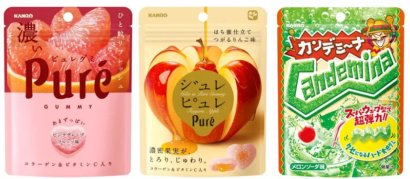 カンロ秋の新作グミは“グミ好き”のツボをつく、 ど真ん中の王道で! 『ピュレグミ』『ジュレピュレ』『カンデミーナ』 秋の新作グミ続々登場!!
