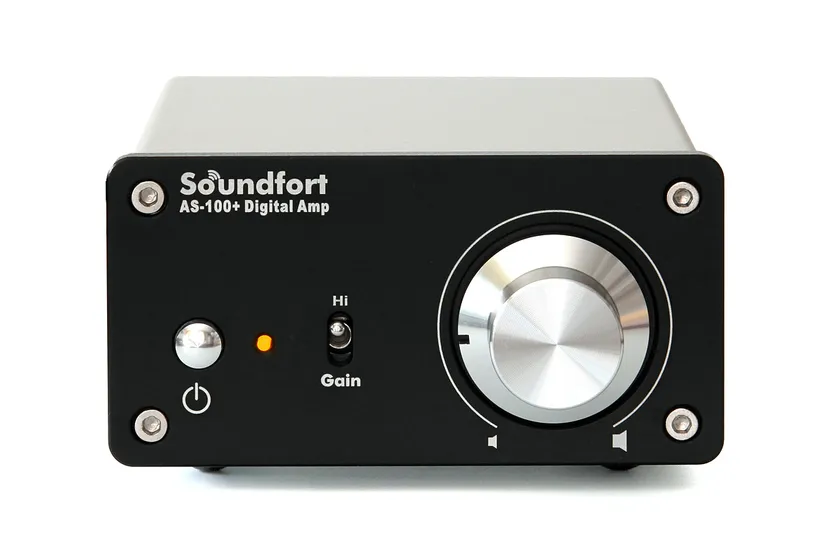 AS-100+は、どんな場所にも設置できるシンプルな小型デジタルアンプで、気軽に心地よく音楽を楽しみ、生活をより豊かなものにするという、Soundfortの想いを凝縮した1台です。