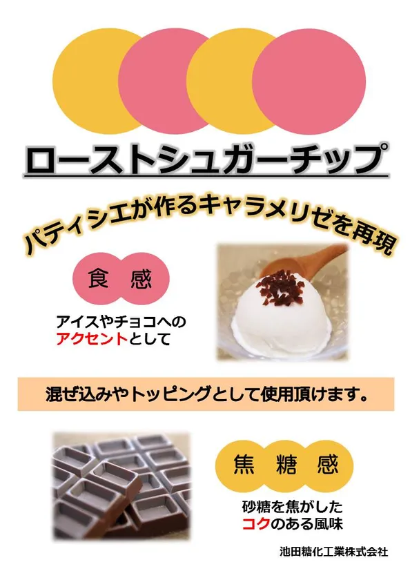 2017年8月23日 10:30池田糖化工業株式会社(本社:広島県福山市、代表取締役社長:池田 直之、以下 池田糖化工業)は、パティシエが作るキャラメリゼを再現した「ローストシュガーチップ」の拡販を開始いたしました。