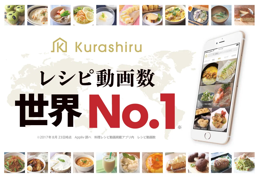 dely株式会社(所在地:東京都品川区、代表取締役:堀江 裕介)は、当社が運営するレシピ動画サービスkurashiru [クラシル](以下、クラシル)の動画数が、2017年8月23日付で世界一の本数(※)に達したことをお知らせいたします。2016年2月のサービス開始から1年6ヶ月での達成となります。