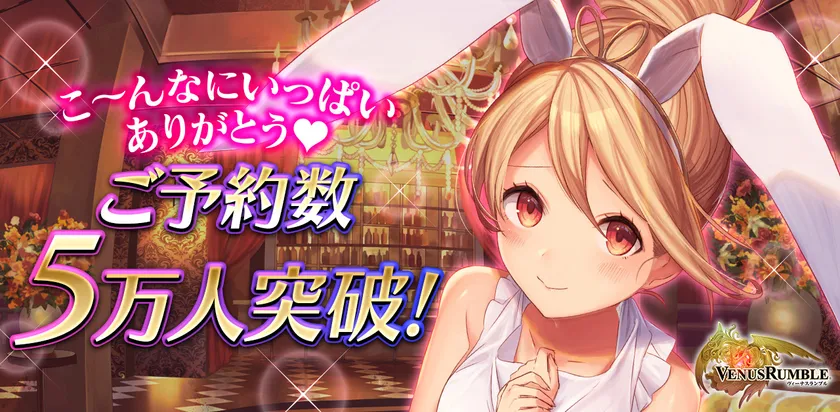 2017年8月23日 12:00株式会社ブループリント(代表取締役社長:小林 功、以下「ブループリント」)は、株式会社スクウェア・エニックス(代表取締役社長:松田 洋祐、以下「スクウェア・エニックス」)と共同開発中の、スマートフォン向けアプリゲーム「VenusRumble(ヴィーナスランブル)」の事前登録者数が5万人を突破いたしましたことをお知らせいたします。