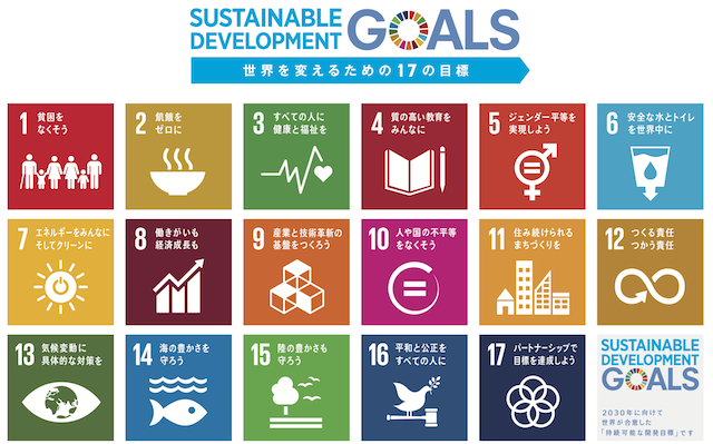SDGsは、2015年9月に国連で採択された「持続可能な開発のための2030アジェンダ」の17の目標と169のターゲットからなる「Sustainable Development Goals=持続可能な開発目標」のことです。国連に加盟するすべての国が全会一致で採択したアジェンダのもと、2015年から2030年までに、貧困、エネルギー、気候変動など持続可能な開発のための諸目標を達成するべく力を尽くします。(参考:国連広報センター ホームページより)