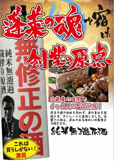 品質へのこだわりを受け継ぐ! 暗闇で6か月監禁熟成した「蓬莱 無修正の酒」を発売